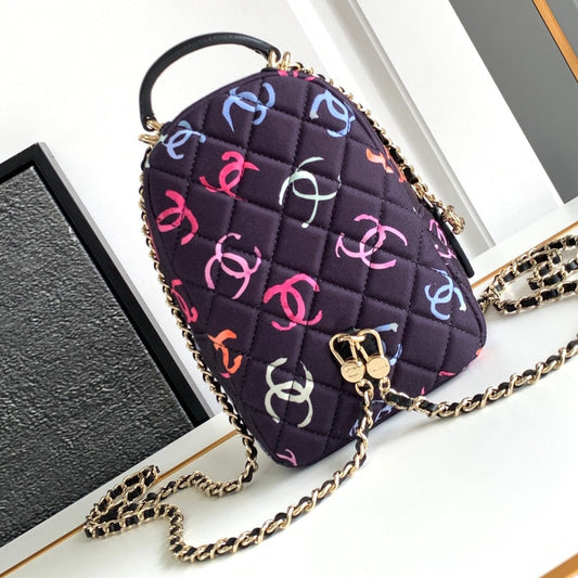 CC BACKPACK 18CM BLACK & MANY OTHER COLORS PRINTED FABRIC GOLD HARDWARE
