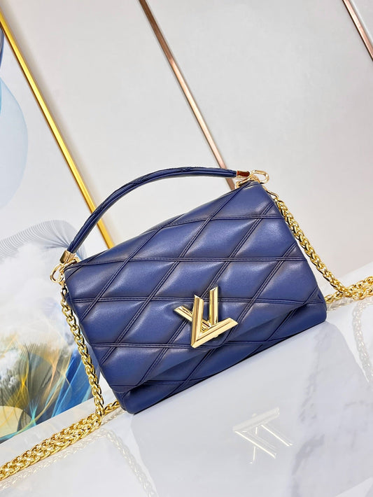 GO-14 MM 23 IN LIGHT BLUE GRAY QUILTED LAMBSKIN GOLD HARDWARE
