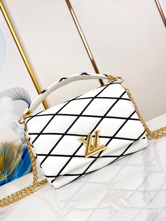 GO-14 MM 23 IN WHITE BROWN QUILTED LAMBSKIN GOLD HARDWARE